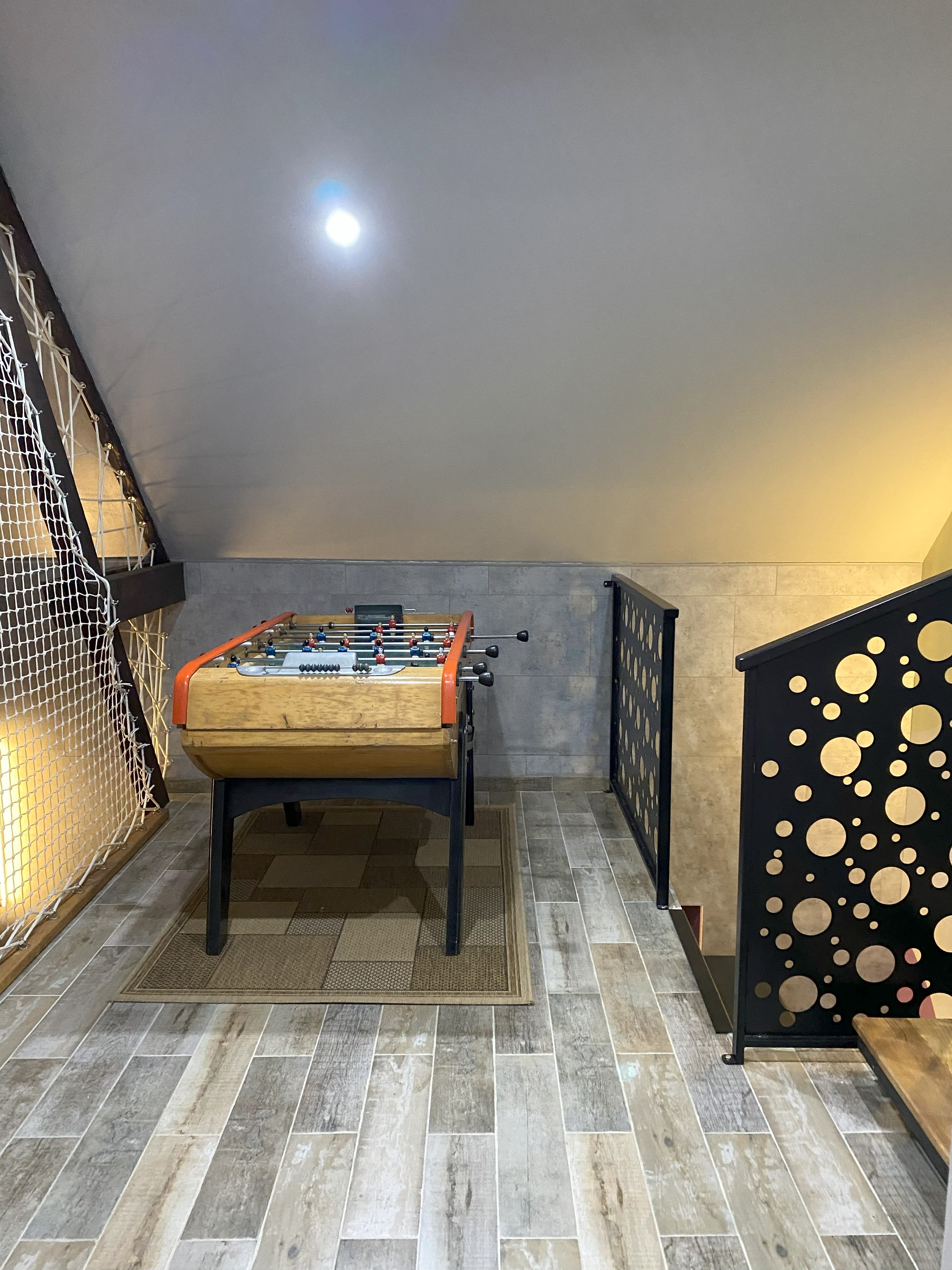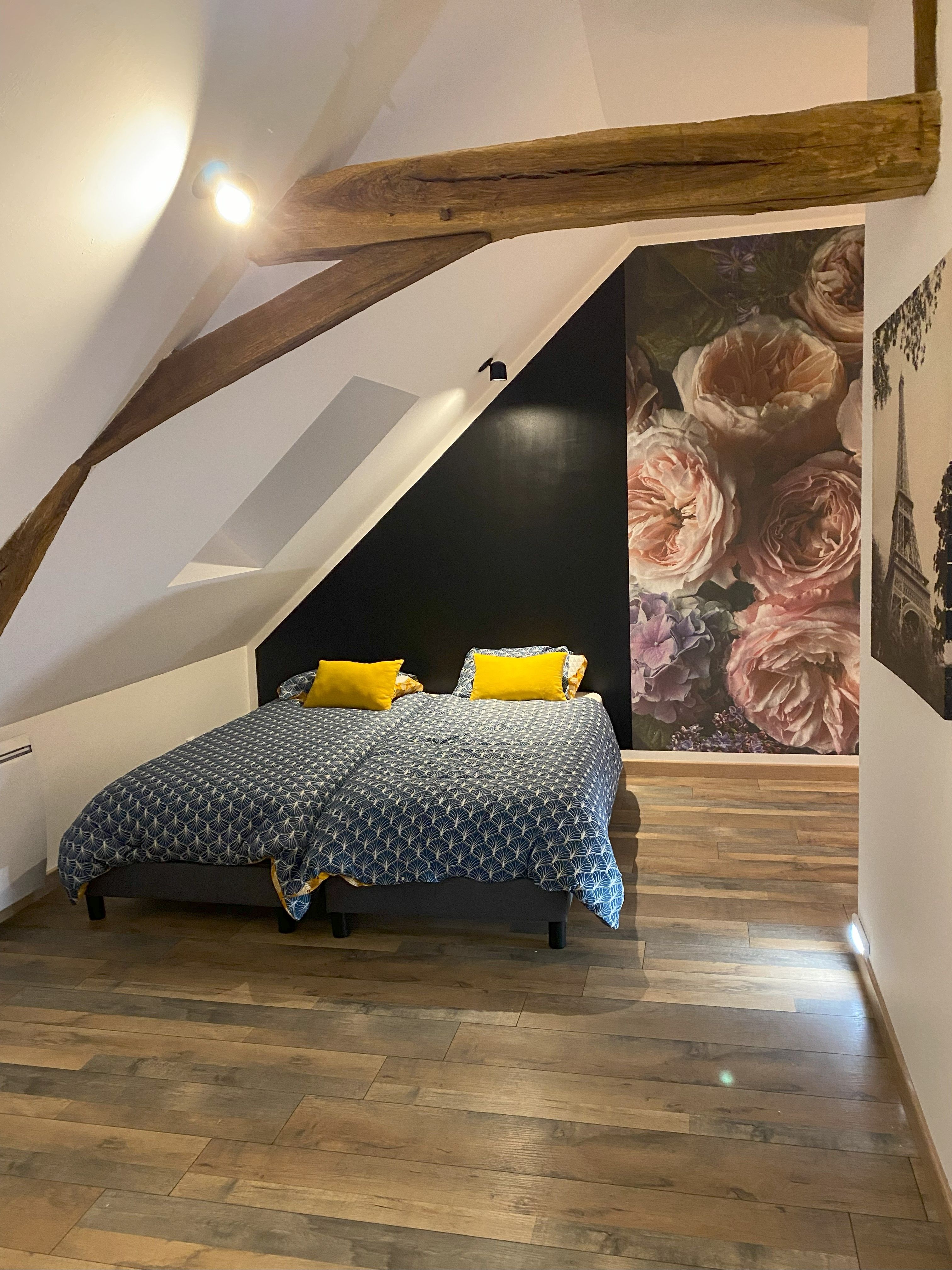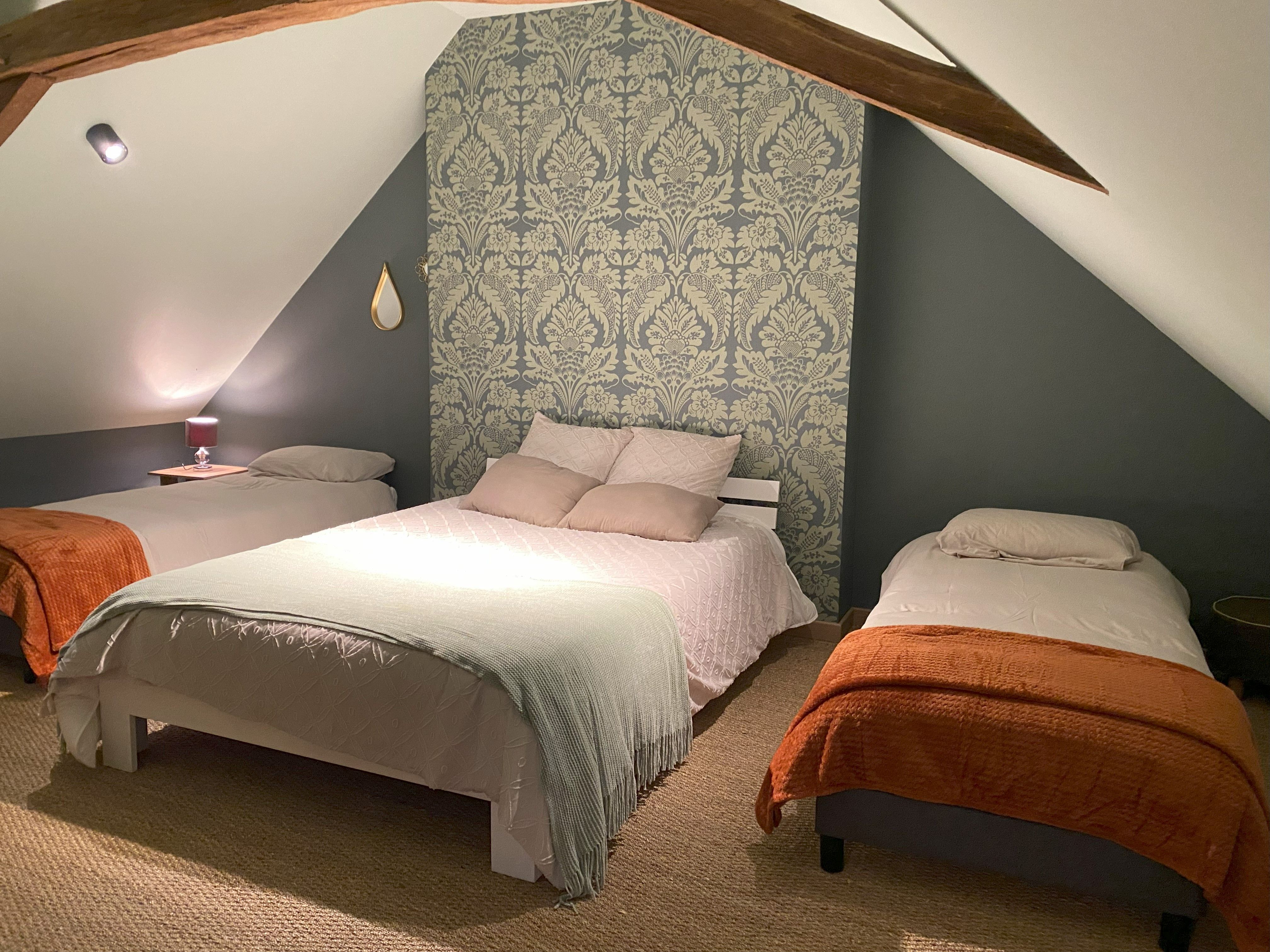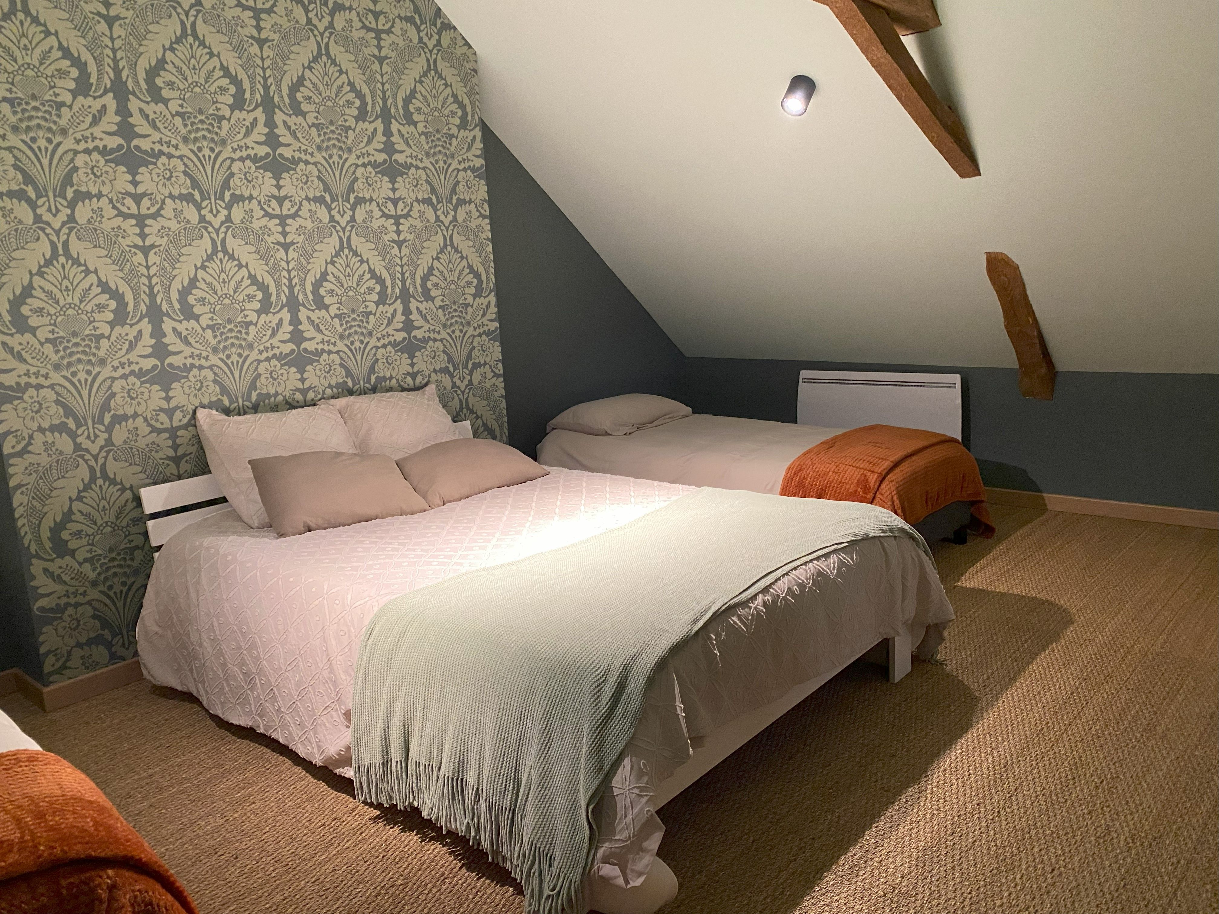 Au 2ème niveau: 1 chambre avec 1 lit 140, une chambre de passage pour 4 pers avec 4 lits 90 et 1 chambre 4 pers avec 1 lit 140 et 2 lits 90.