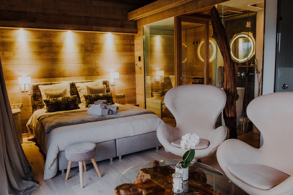 Cette construction sur pilotis tout en bois est un refuge pour les couples qui veulent se ressourcer. Un sauna traditionnel se trouve dans votre chambre! Il offre une vue magnifique sur le port plein de charme de Grez Neuville.