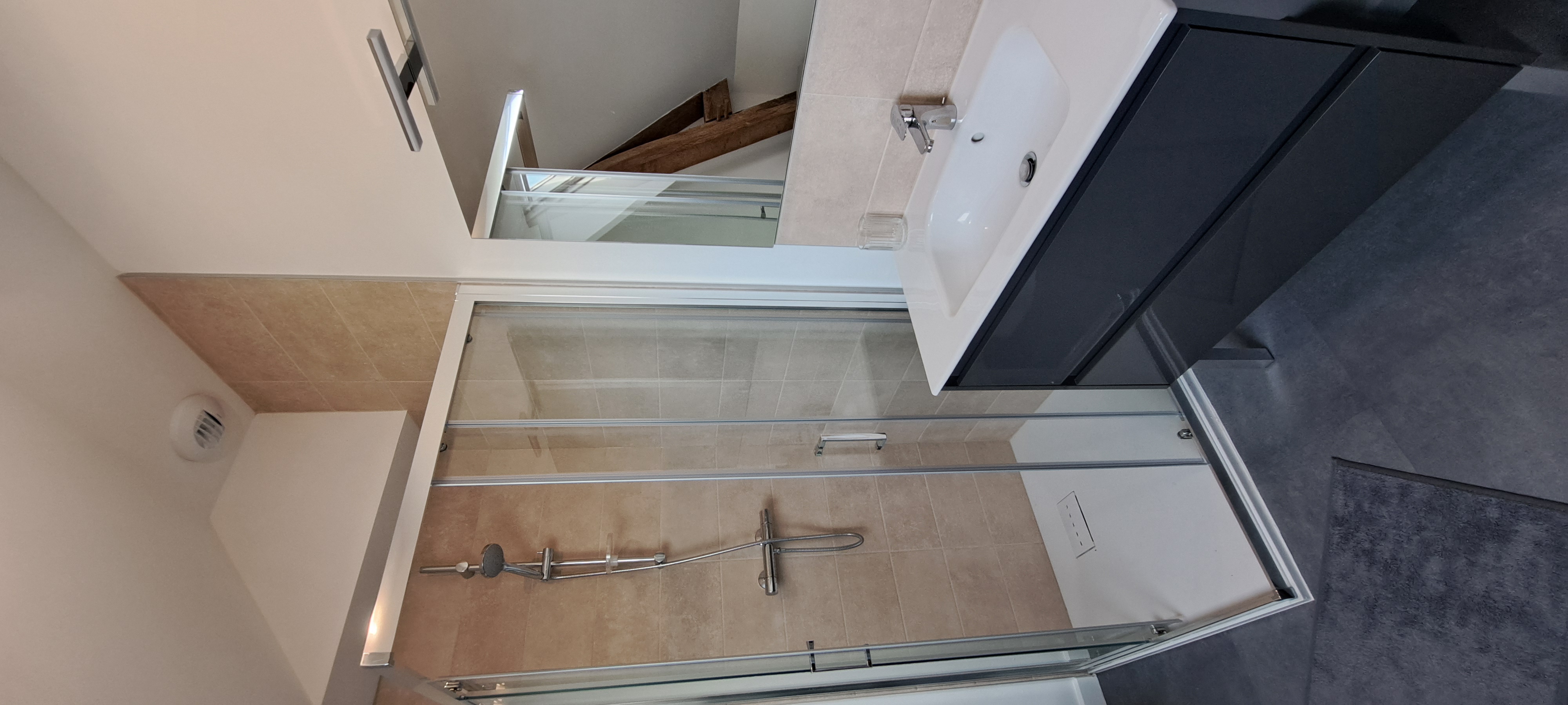 – Une salle de bain avec douche et WC