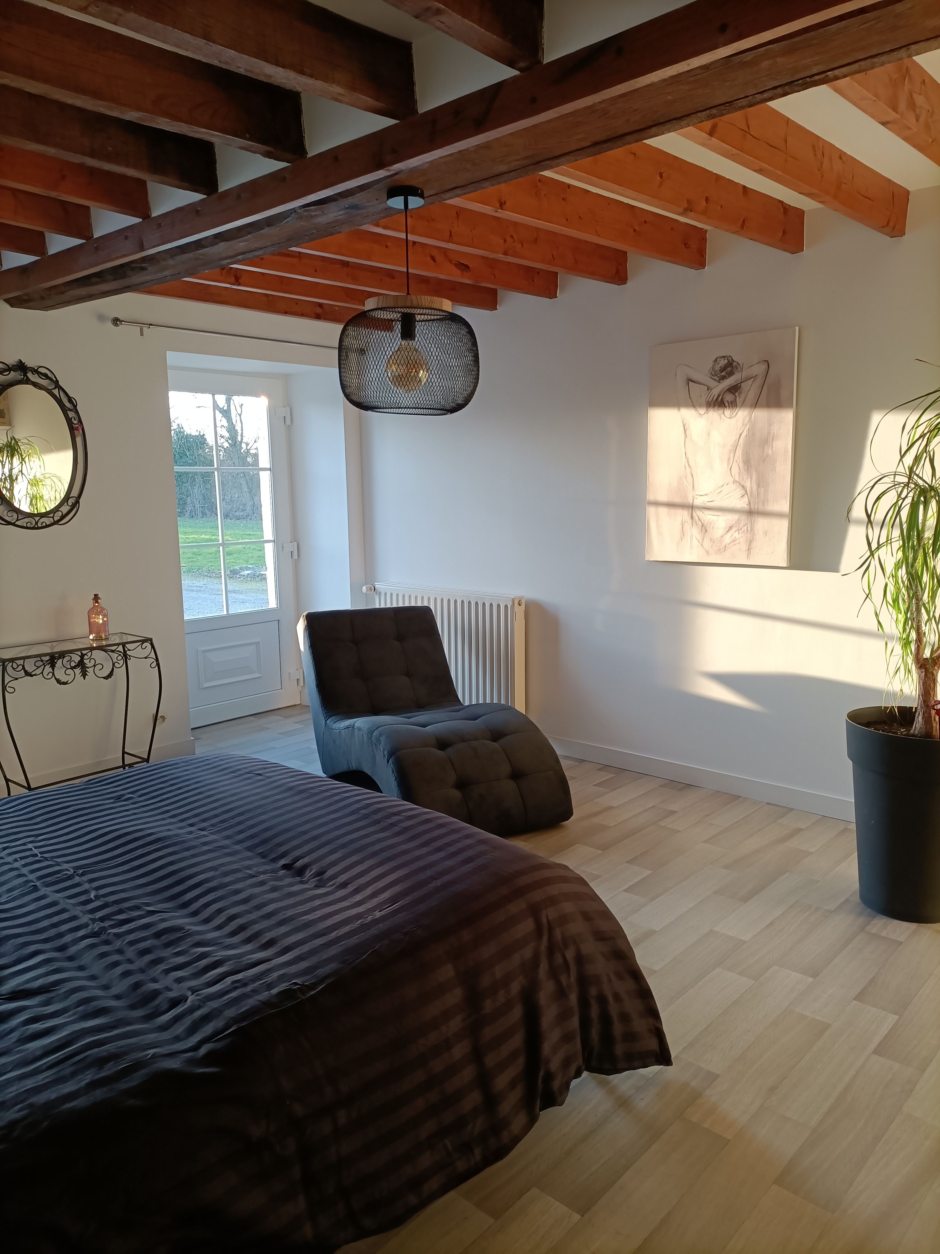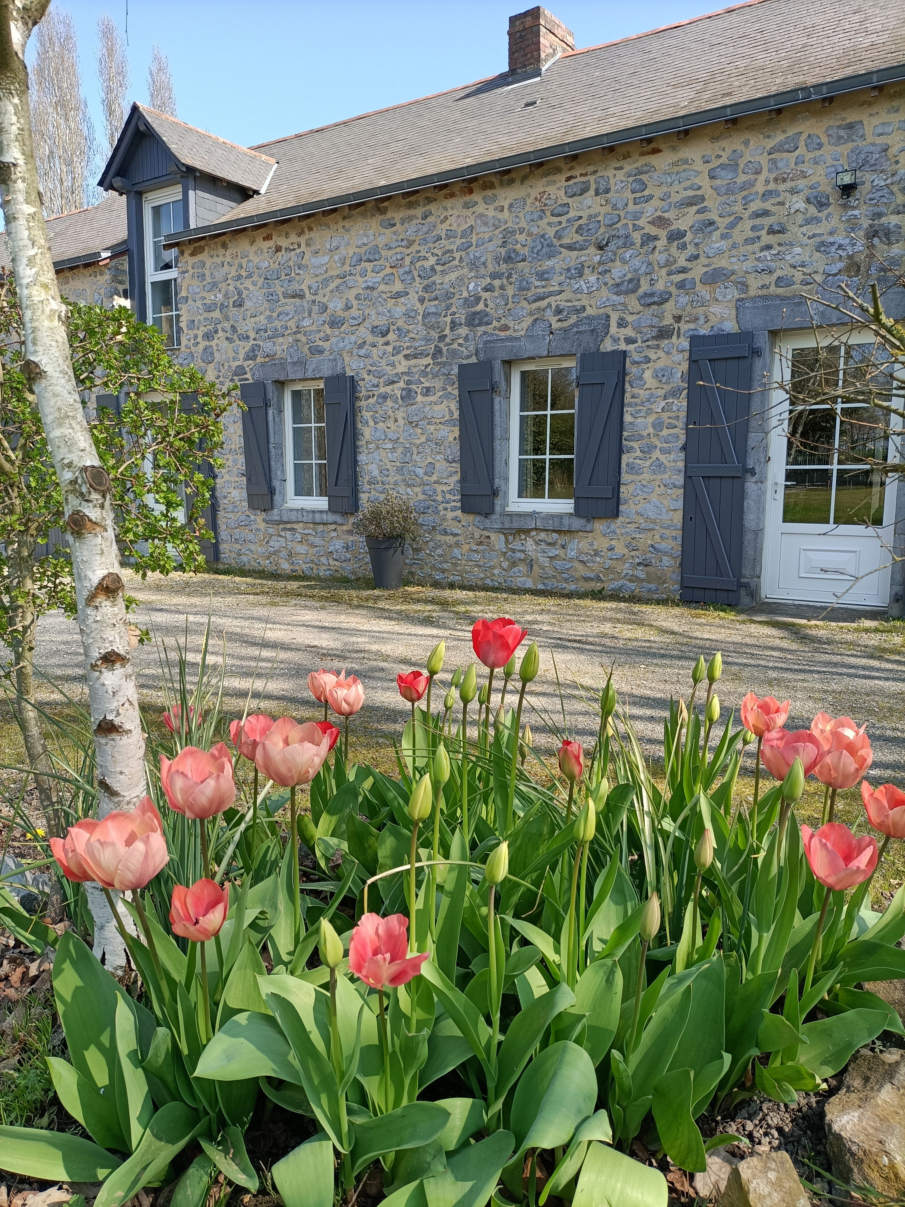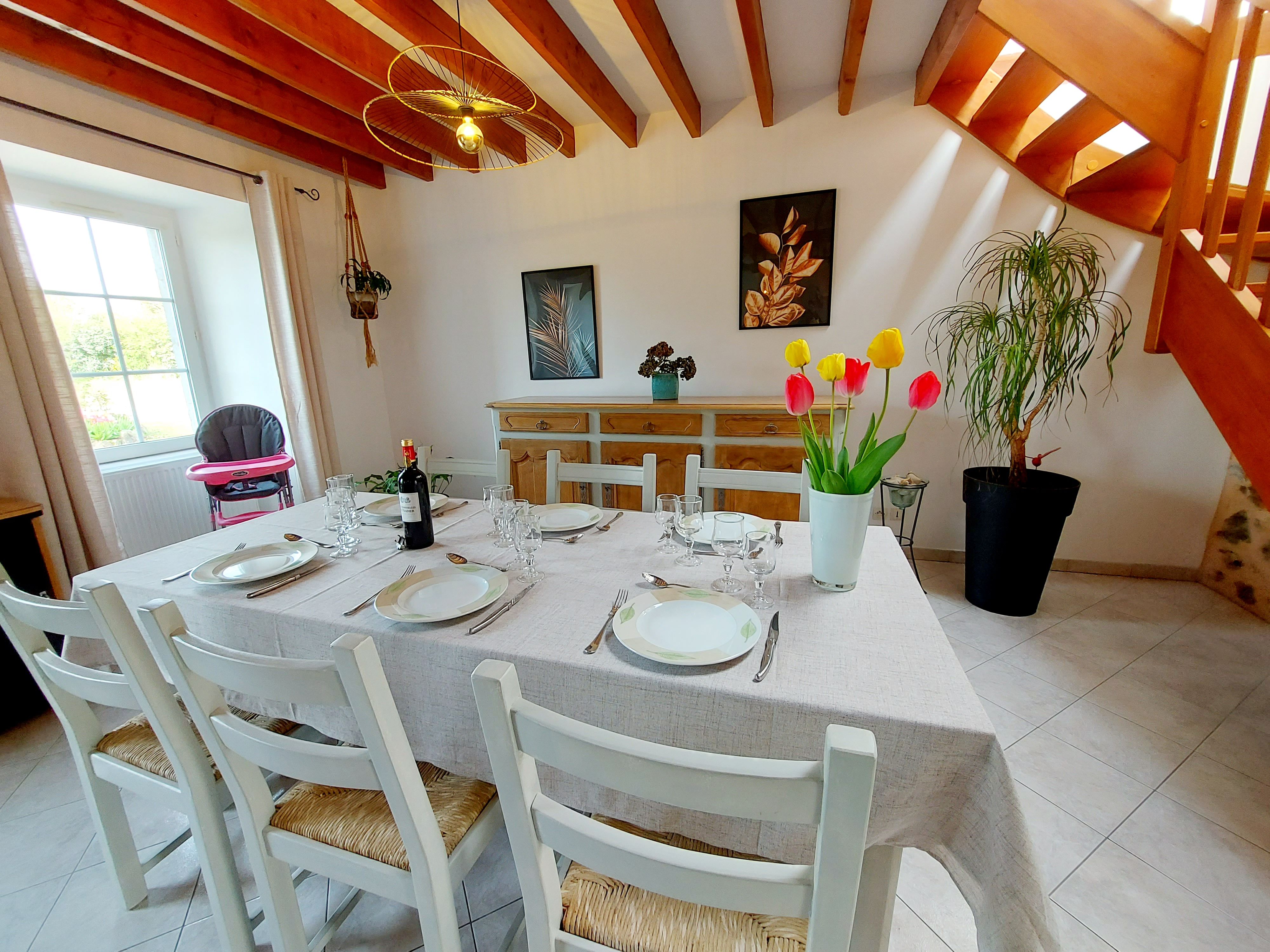 Chaque porte et fenêtre est une vue sur le jardin et la campagne, chaque fois une occasion de voir jaillir un geai des chênes, une tourterelle, un pic, un écureuil ou un lapin… Le chant des oiseaux est en fond sonore, apaisant.