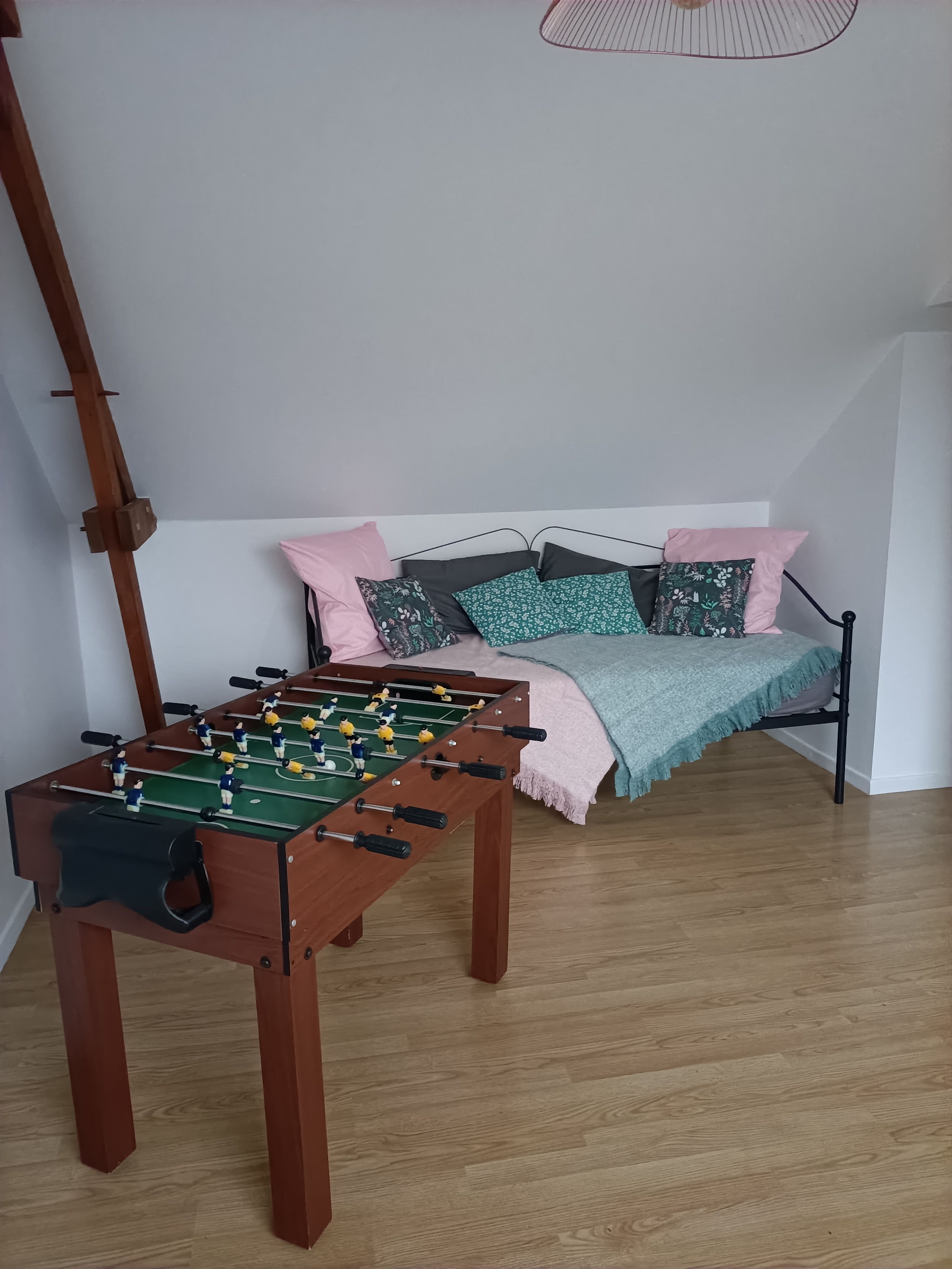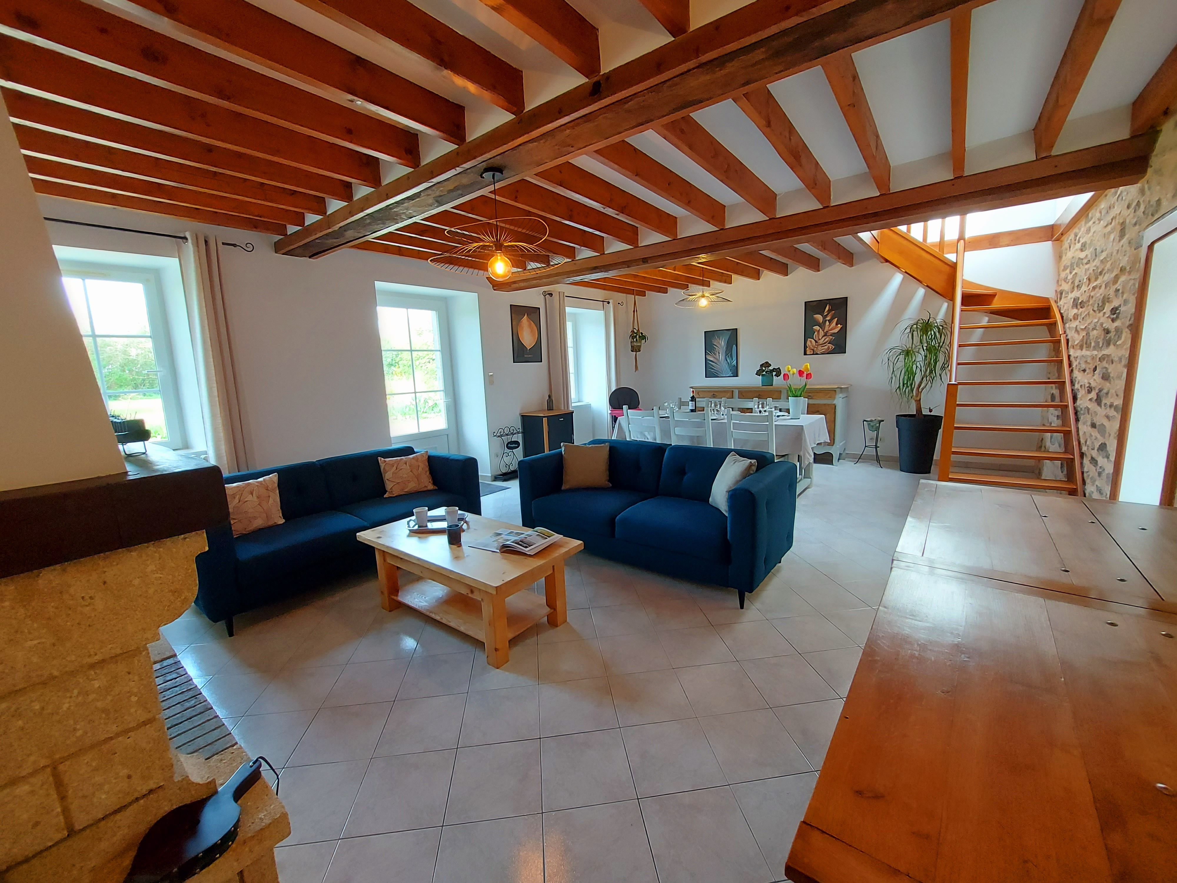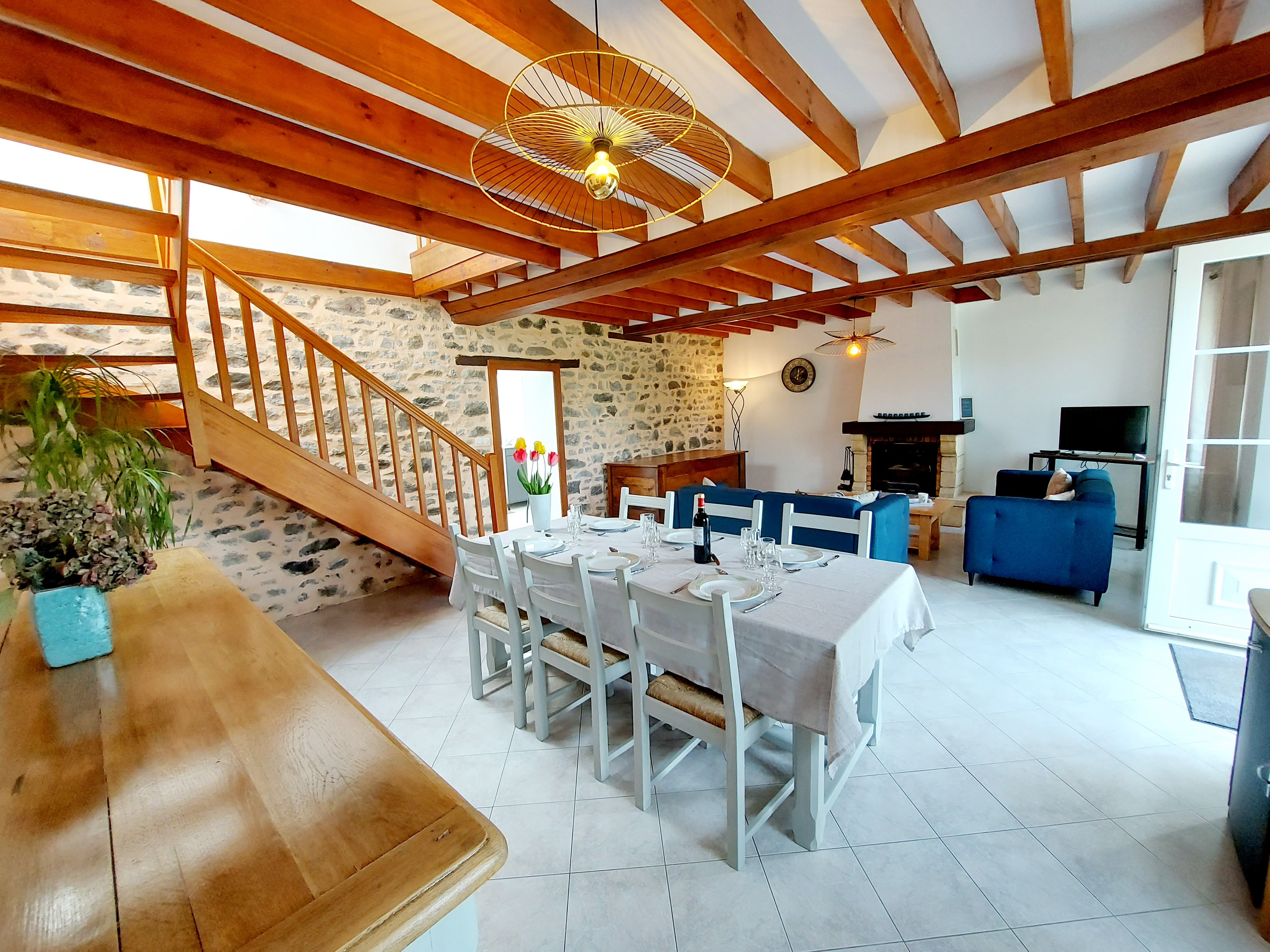 A deux pour une pause, ou en famille, les 3 chambres permettent d’être jusqu’à 6. Le séjour propose un bel espace de 39m² avec table de repas jusqu’à 8 personnes, un espace salon devant la cheminée avec insert et canapés confortables, TV écran plat, jeux de sociétés.