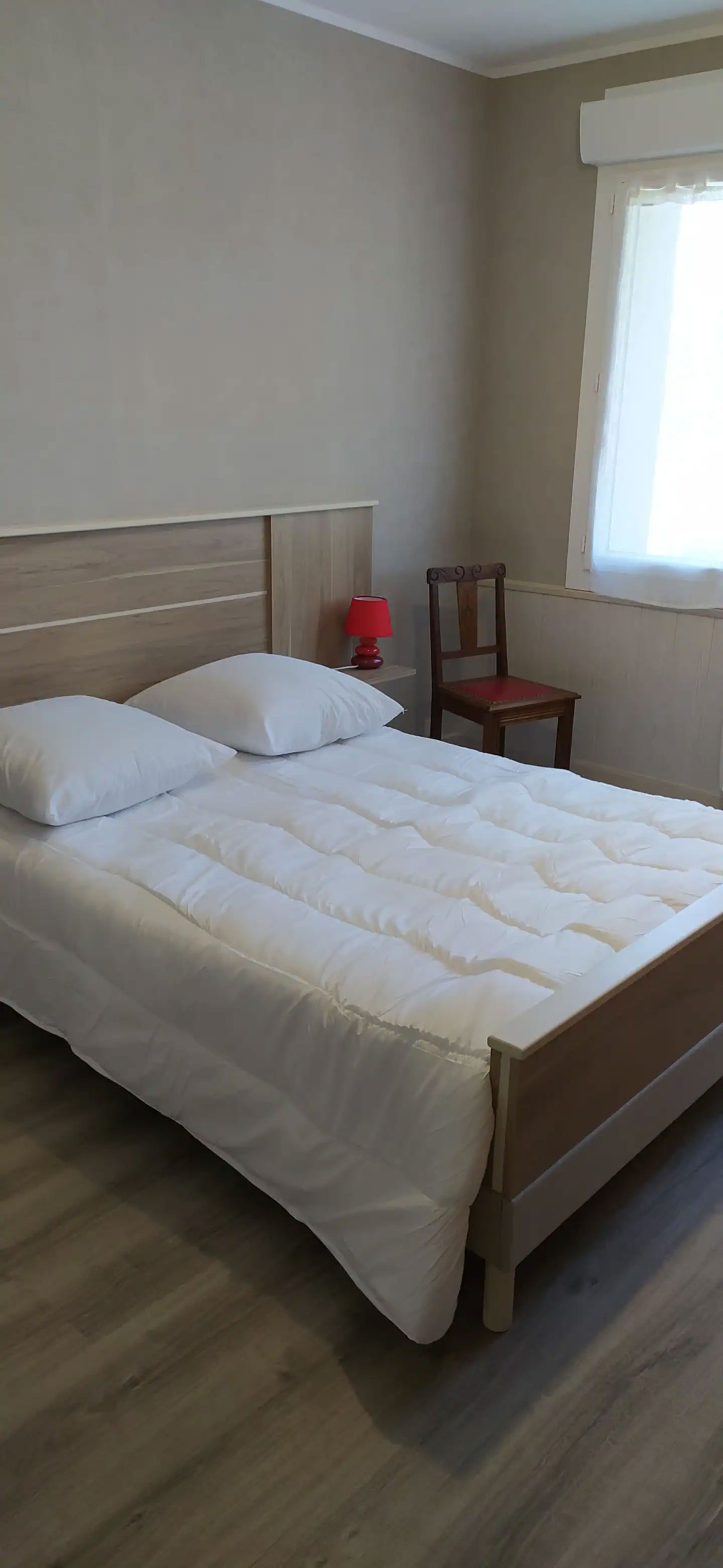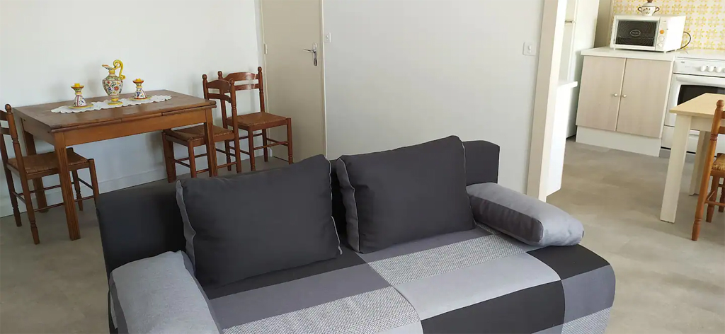 Ce meublé est au rez-de-chaussée de notre maison et vient d’être refait à neuf. Il comprend une cuisine tout équipée (micro-ondes, gazinière, lave-vaiselle…), une salle à manger, un salon avec un canapé-lit, une salle d’eau et deux chambres équipées d’un lit de 140 cm * 190 cm. A l’extérieur, une terrasse avec salon de jardin est à votre disposition.