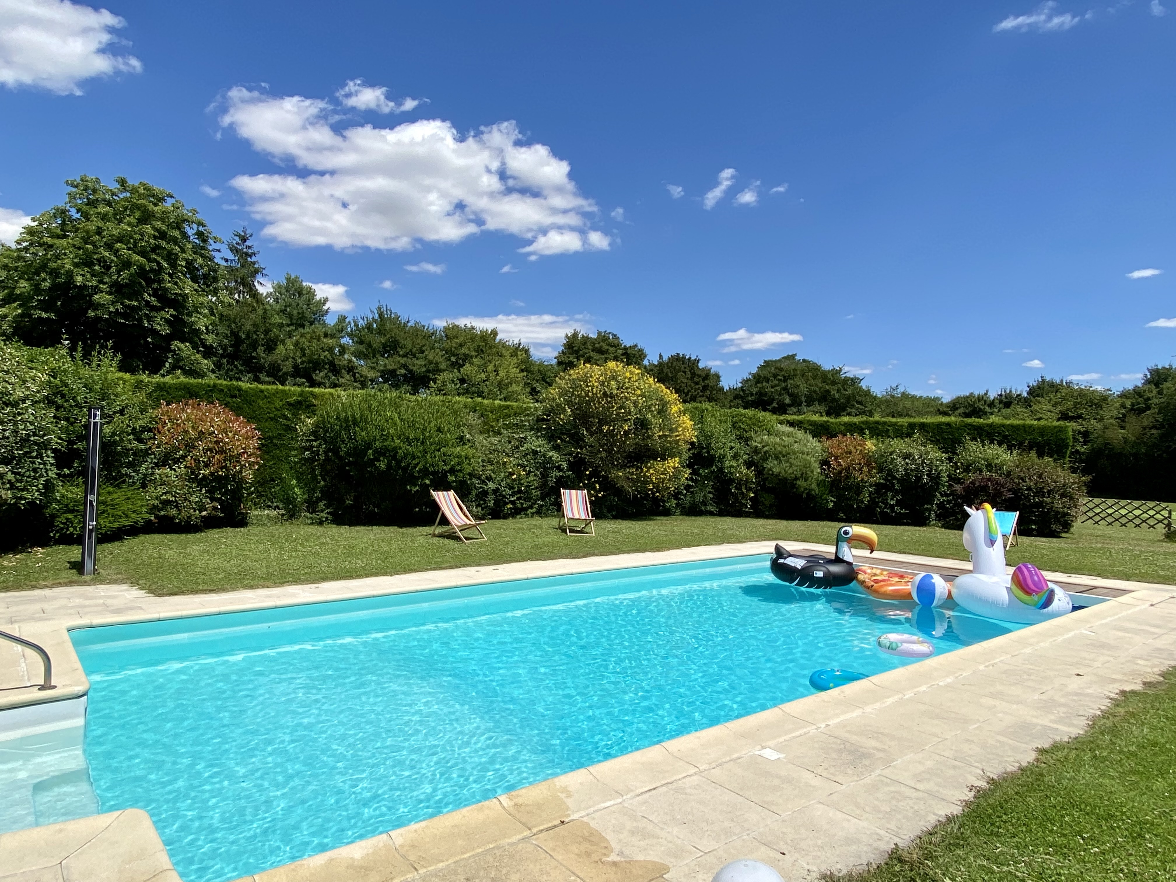 Extérieur : Piscine sécurisée (6 m × 12 m), ouverte de mai à septembre.
