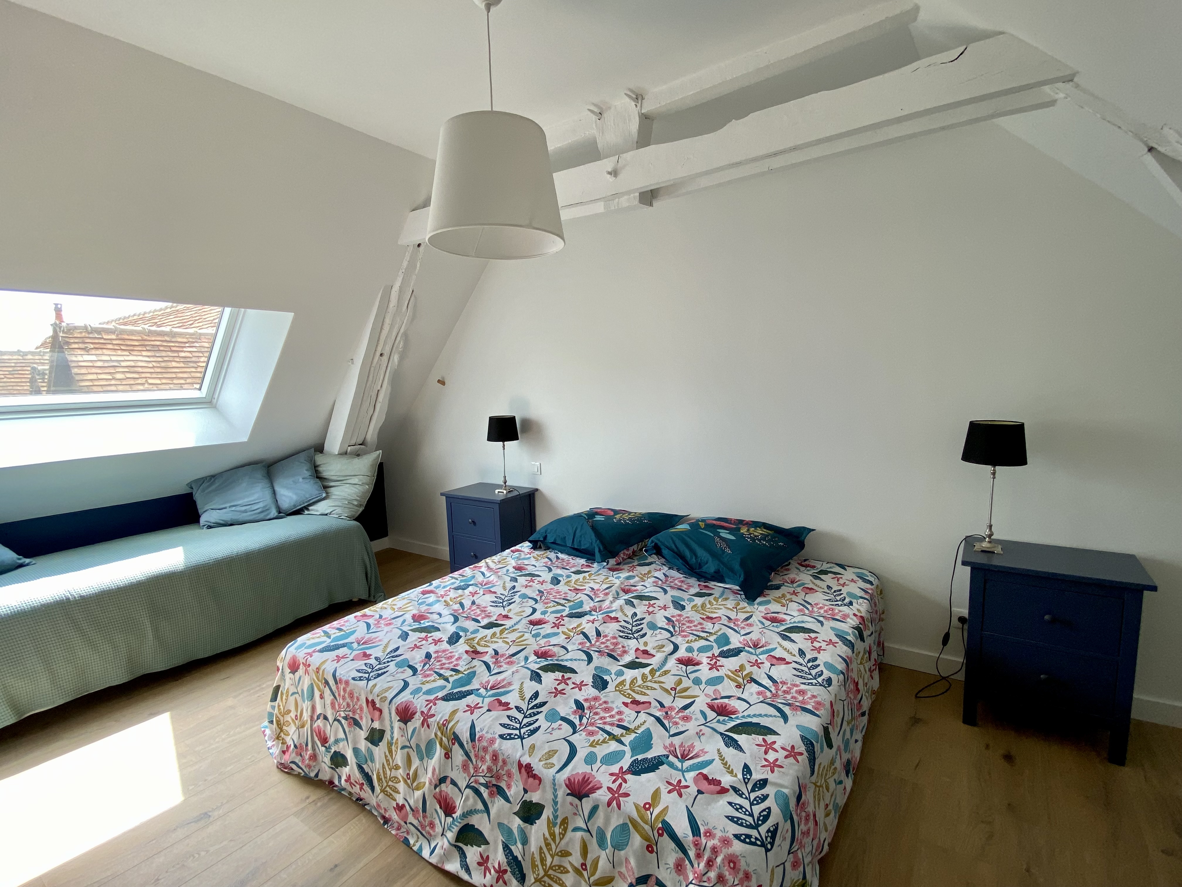 – Chambre Bleue : Lit double (180 cm) ou 2 lits jumeaux (90 cm) + lit simple (80 cm).