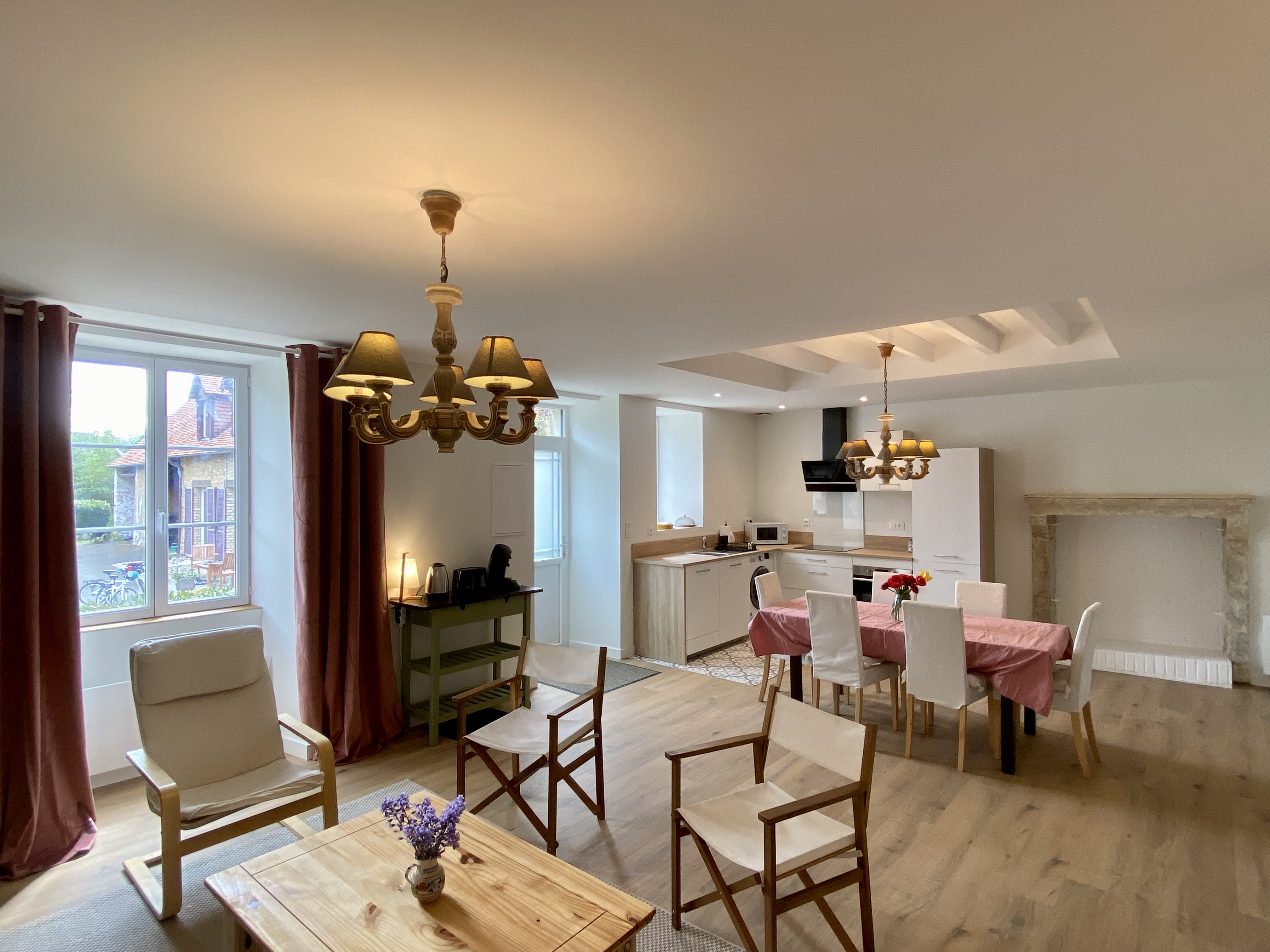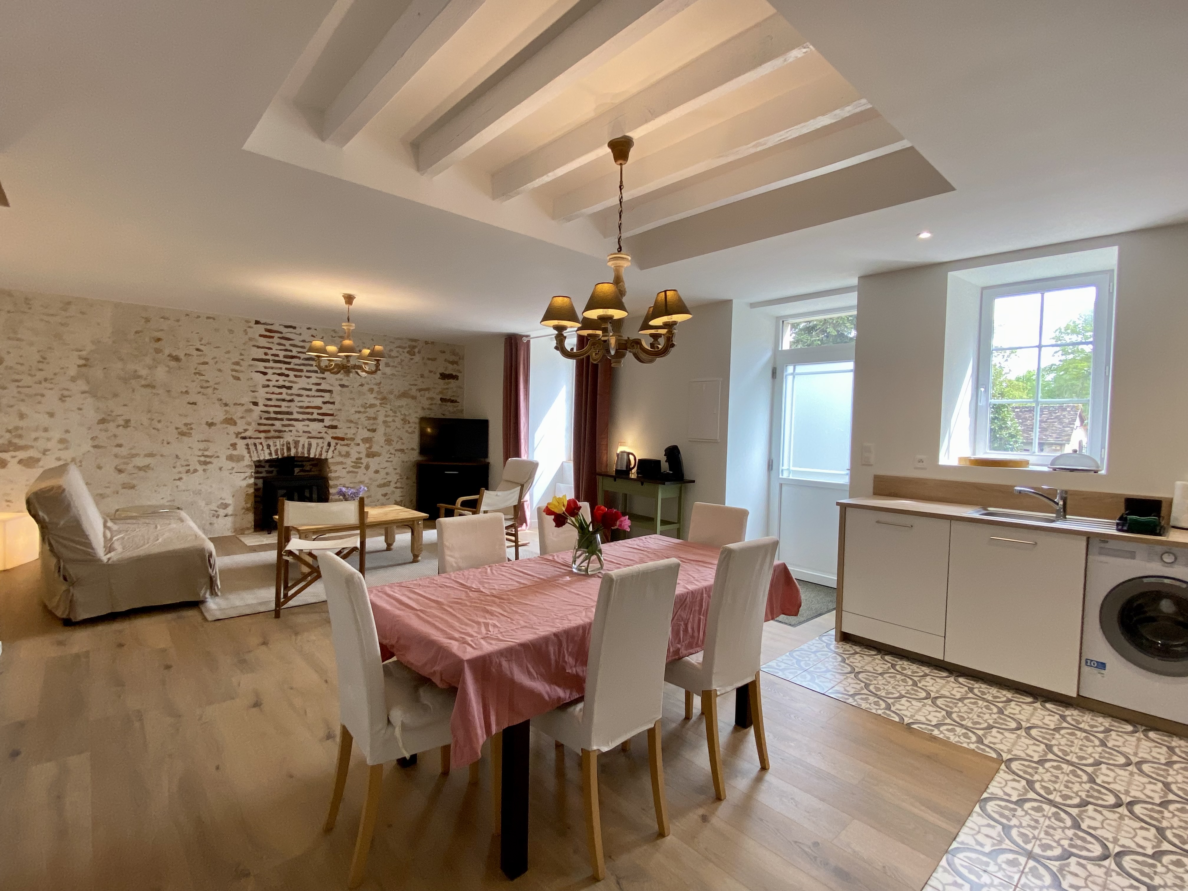 • Rez-de-chaussée : Espace de vie de 45 m² avec cuisine et séjour (canapé convertible).