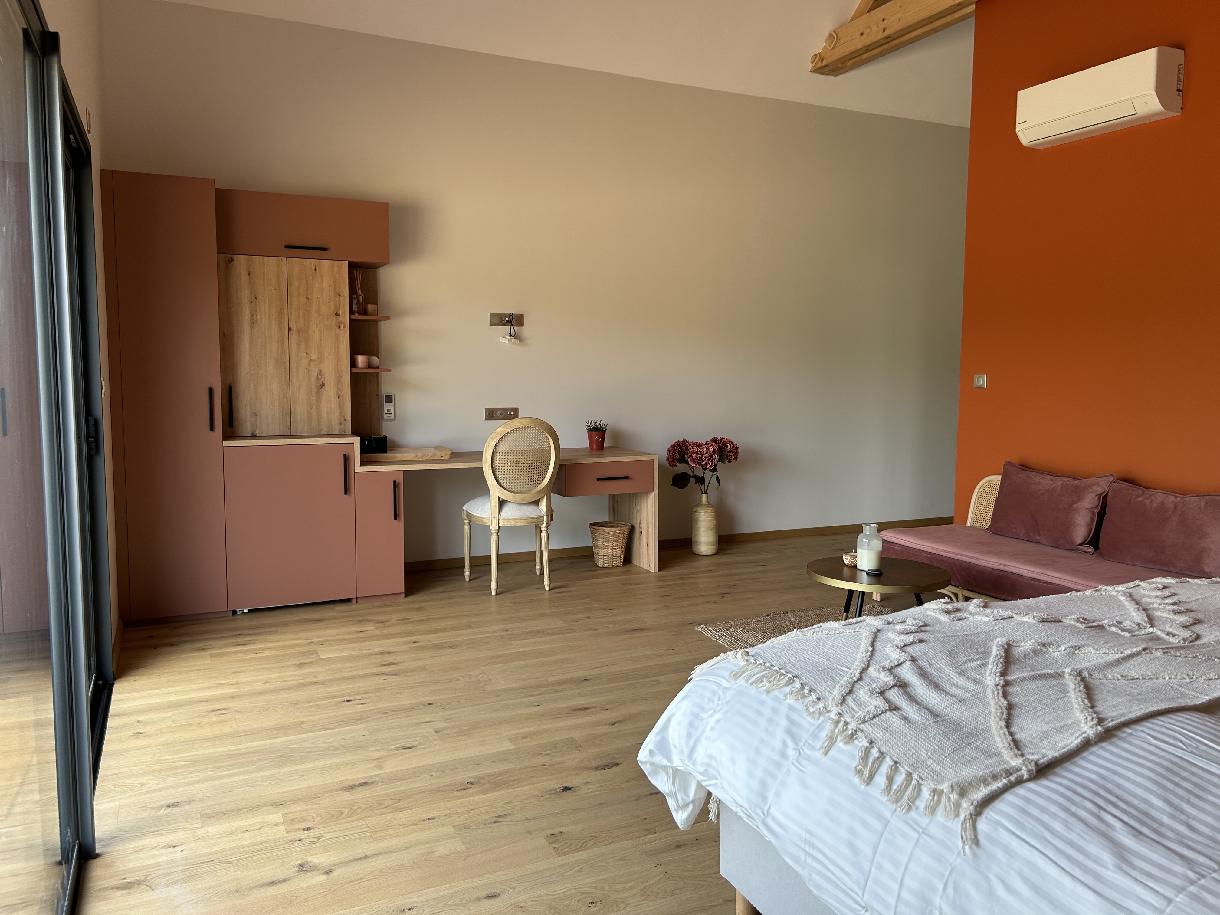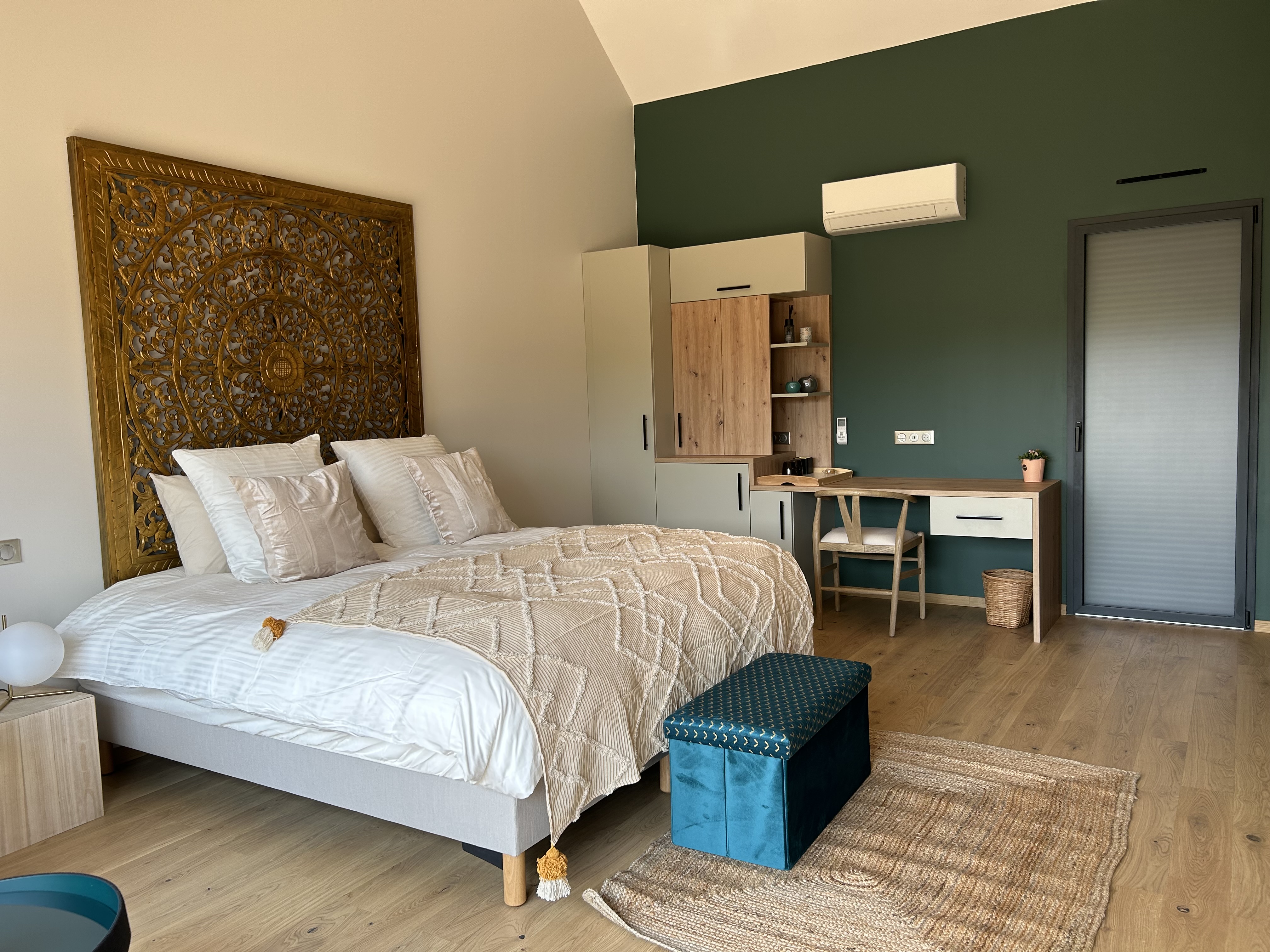Vous séjournez dans un lieu composé de 4 suites totalement équipées et indépendantes* (mini bar, espace bureau, espace dressing, salle de bain et wc privés, terrasse privée avec plancha et jacuzzi individuel), d’un grand salon, salle à manger et cuisine tout équipée avec cheminée et tout son confort haut de gamme à partager avec les autres clients.