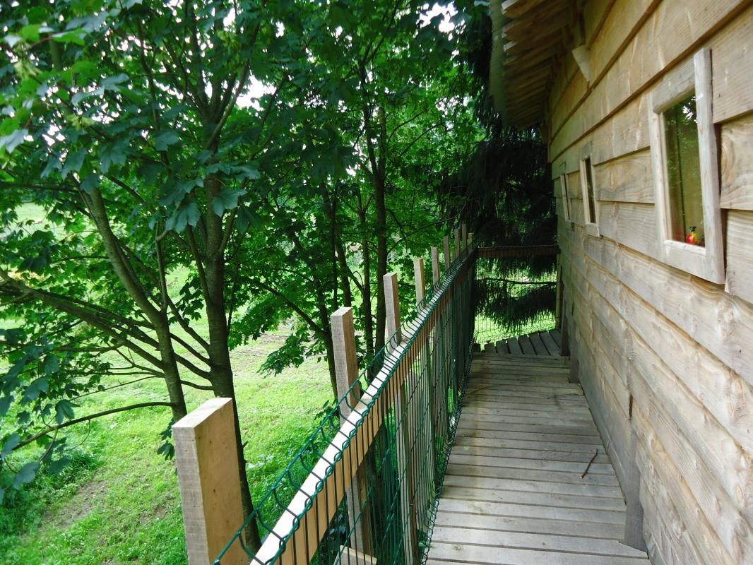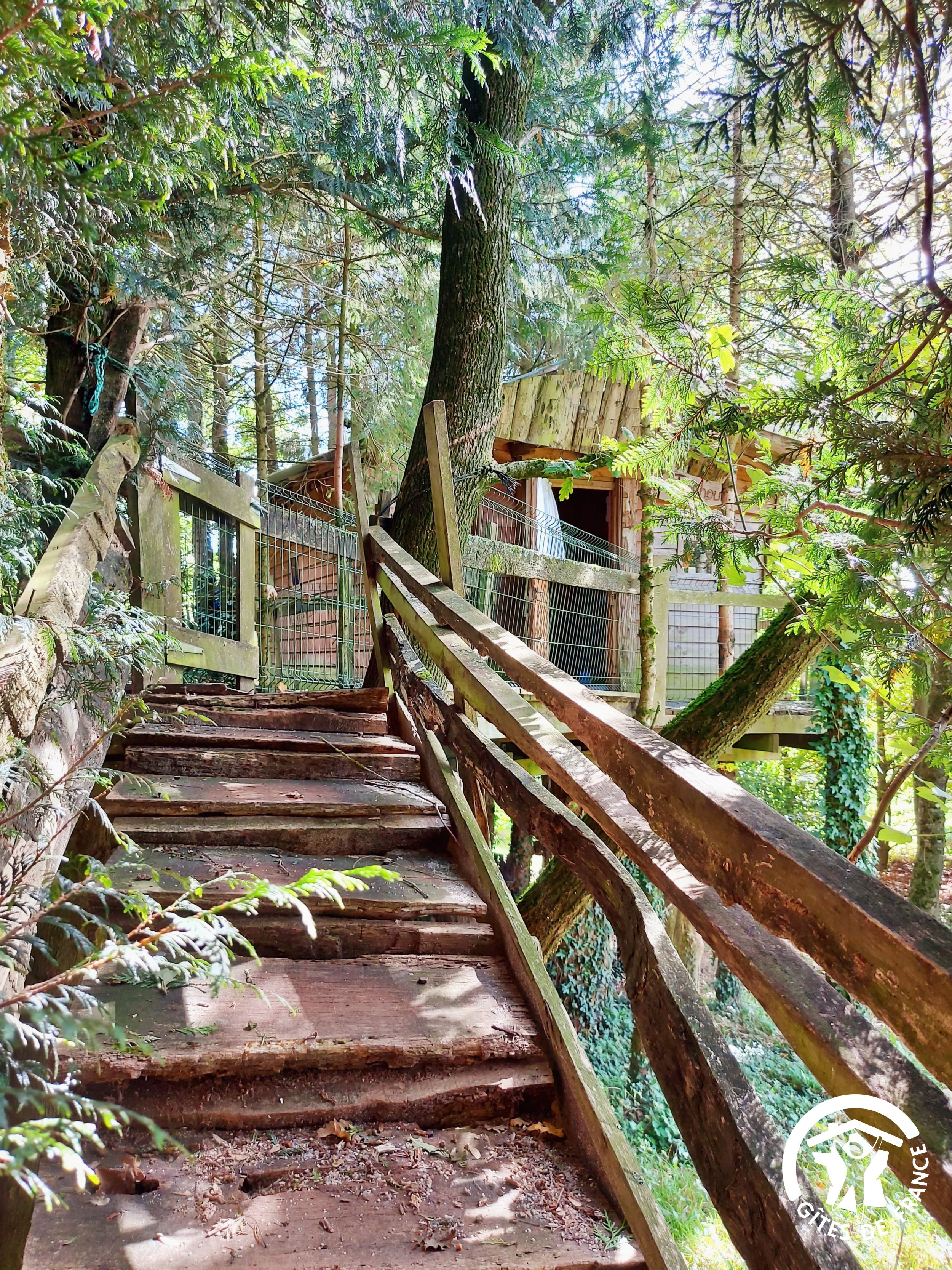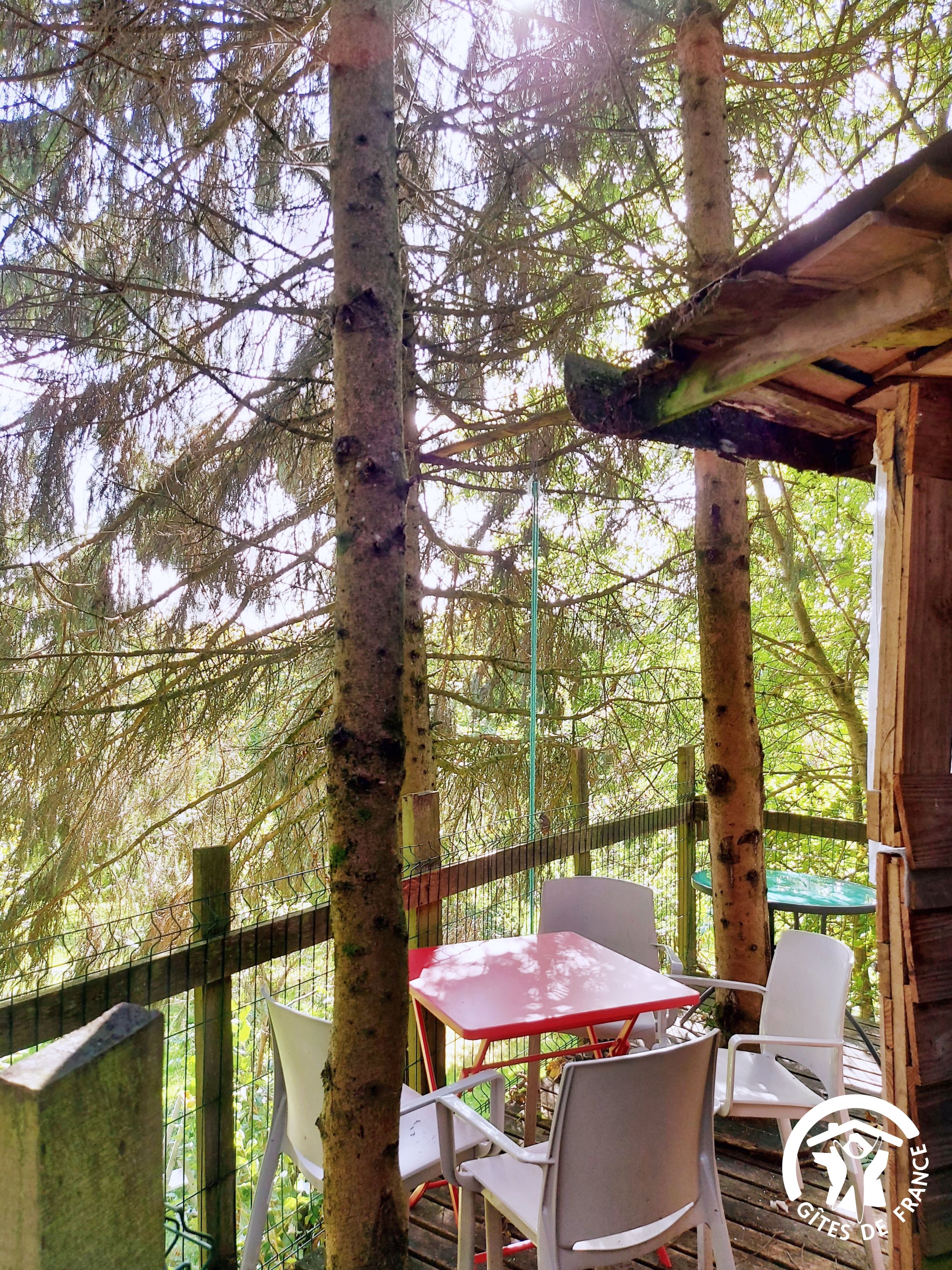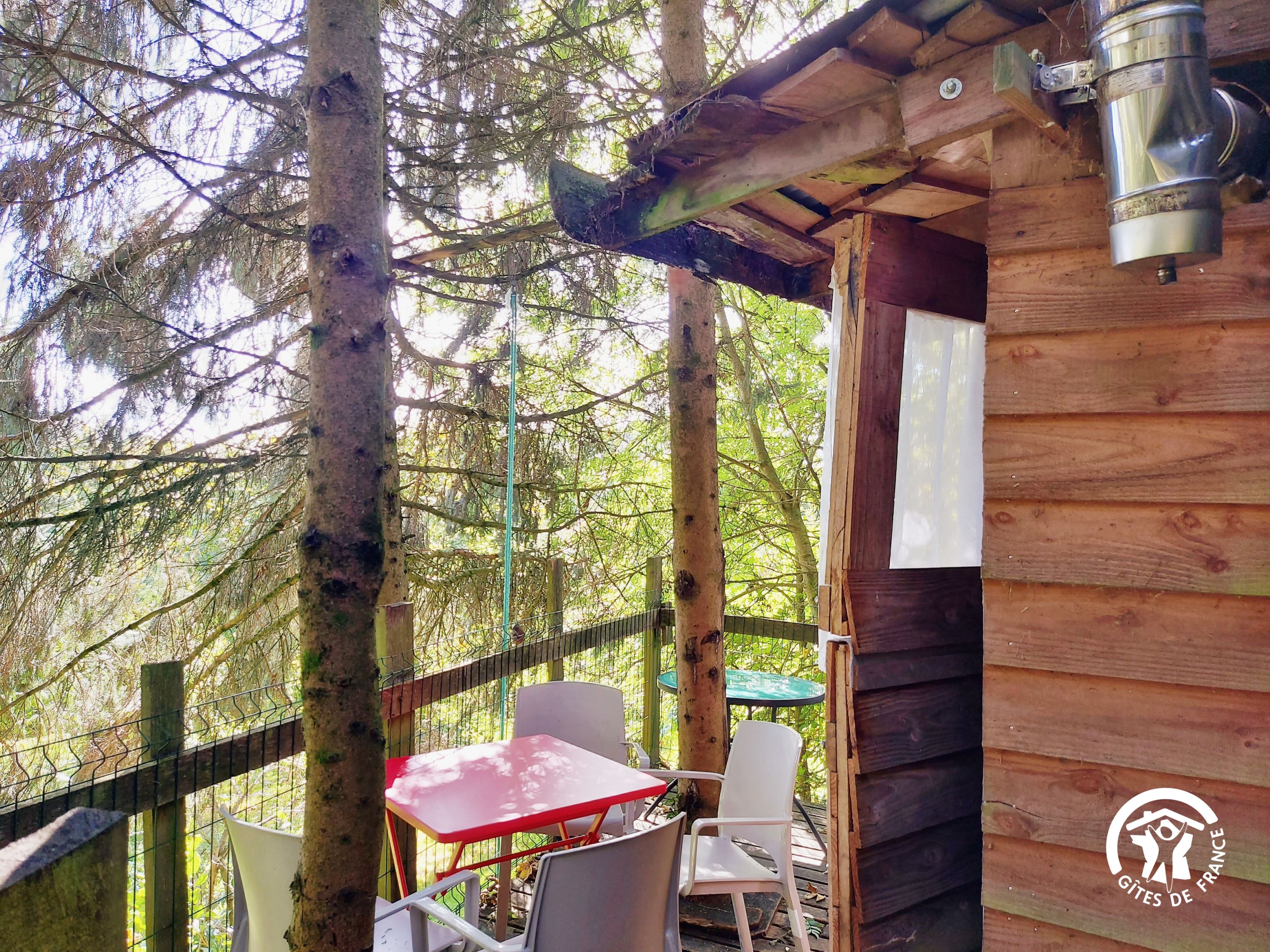 Terrasse tout autour de la cabane, sécurisée. Idéale pour une première immersion dans les arbres avec vos enfants.