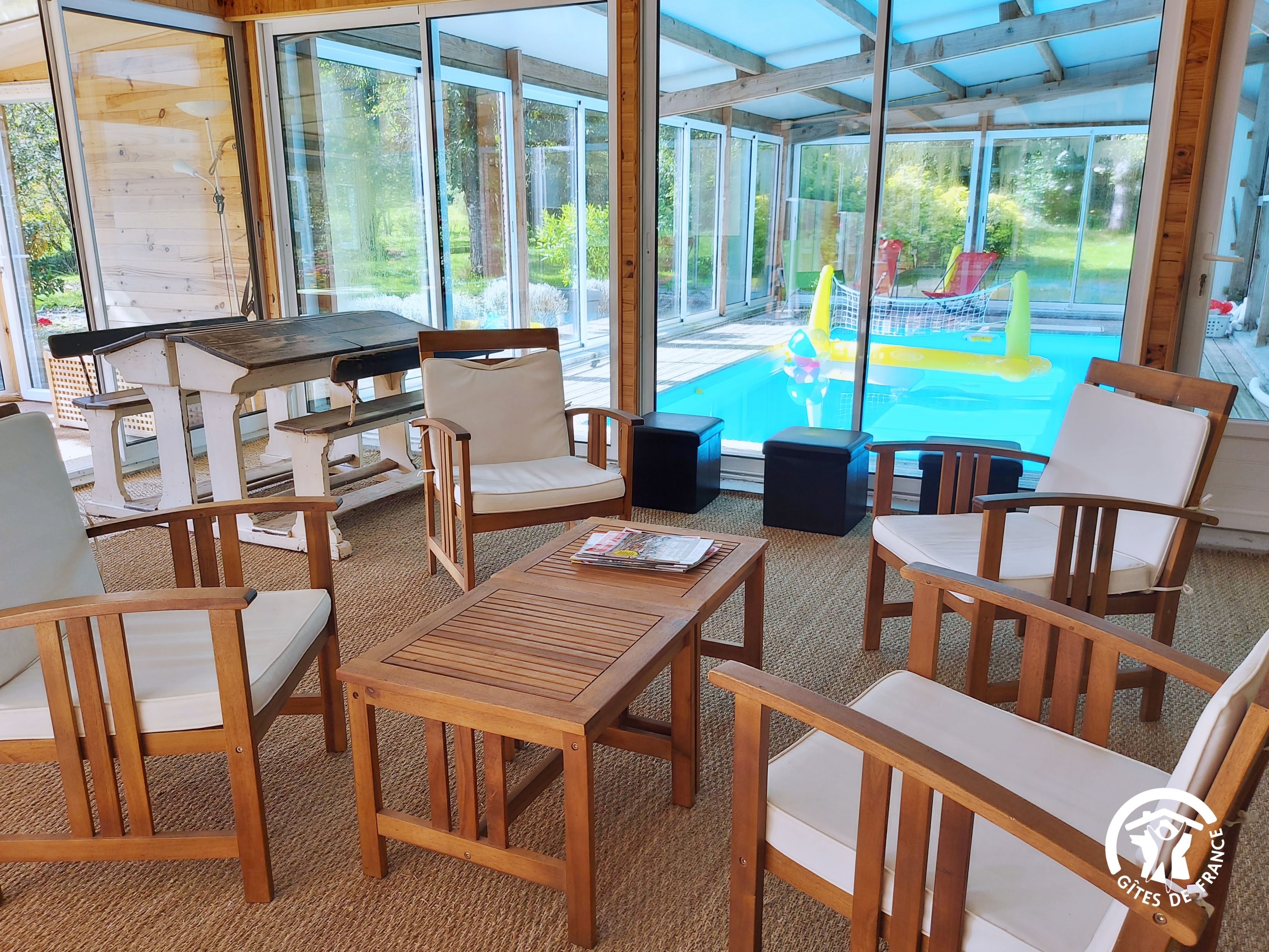 Accès à la piscine couverte et chauffée du 15 avril au 15 octobre, partagée avec les occupants du site (selon l’occupation des hébergements, planning possible). Longueur 6.5m x 3.25m et profondeur: 1.2m à 1.5m.