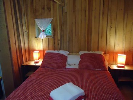 Tentez une nuit ou plus avec le silence et les chants des oiseaux. La cabane est tout confort : électricité, eau chaude, réfrigérateur, bouilloire, micro-ondes, 2 plaques électriques, wc, salle d’eau et petit poêle à bois. Offre tout inclus.