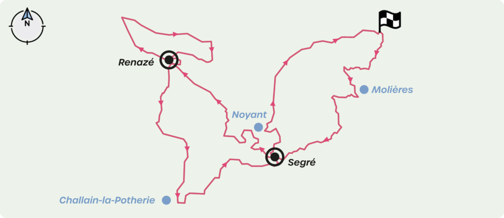 Entre paysages vallonnés, villages pittoresques et trésors du patrimoine, cette boucle vers l’Anjou Bleu promet une immersion totale dans l’histoire et les richesses naturelles du territoire. Le parcours entame son premier tronçon en direction de Chemazé, où se dresse fièrement l’église de Molières. Cet édifice, témoin d’une architecture élégante et sobre, invite à un moment de contemplation avant de poursuivre vers Renazé, ville au passé industriel marqué par l’extraction de l’ardoise.